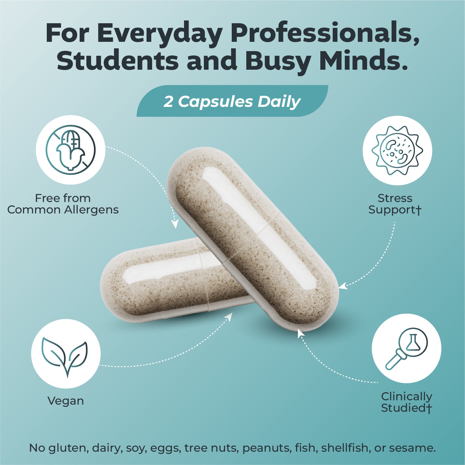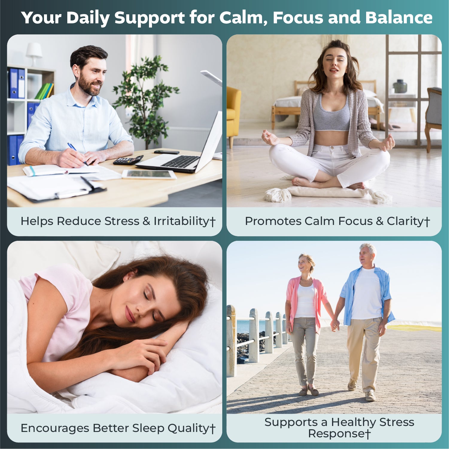 • Clinically proven ingredients provide calming support for mental clarity.