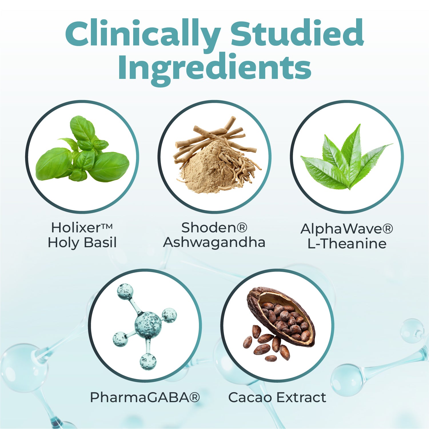 Clinically Studied Adaptogens: Holixer™ Holy Basil and Shoden® Ashwagandha reduce irritability, support healthy cortisol levels, and promote overall mental well-being.